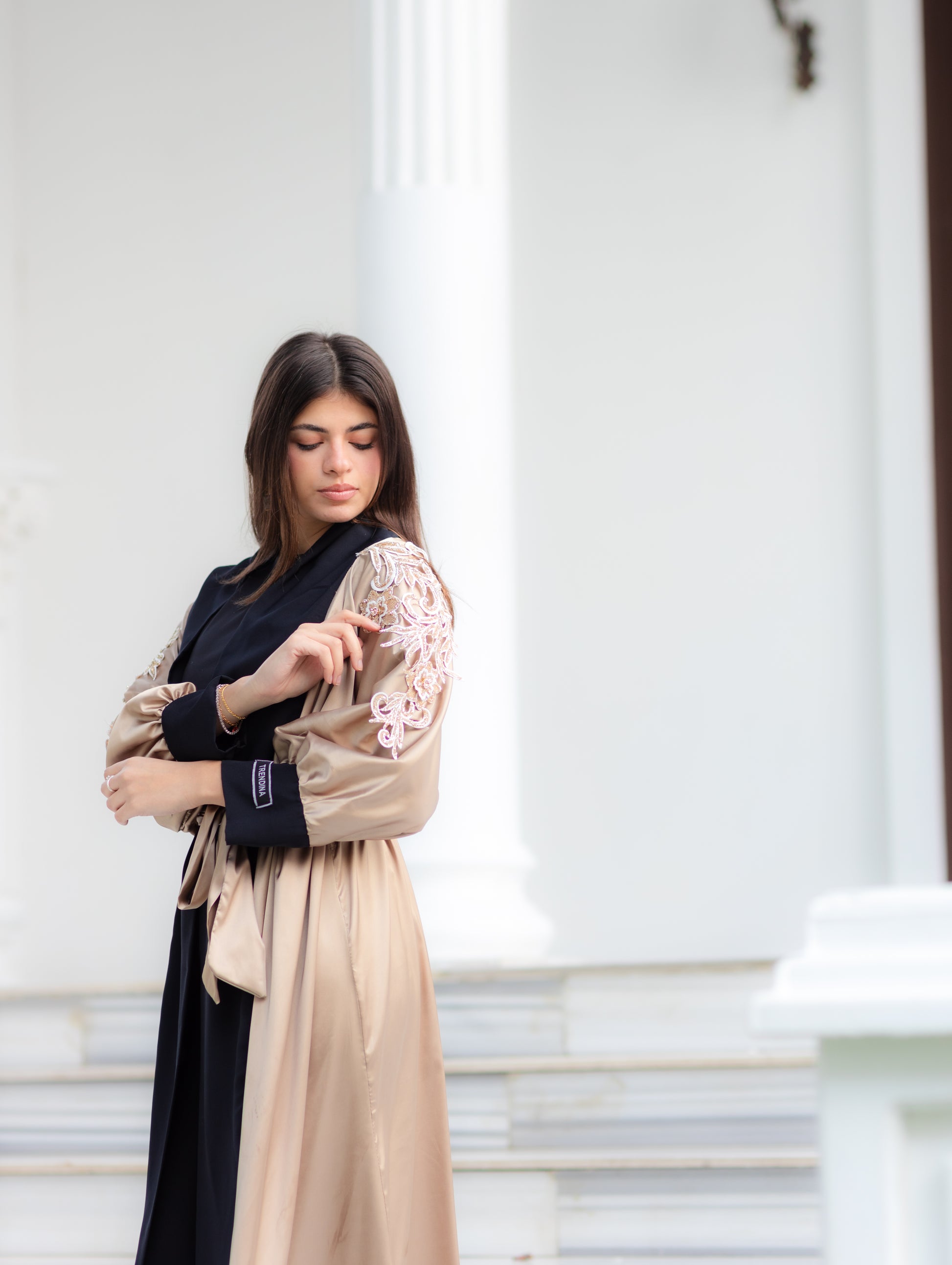 Elegant satin silk open kaftan,perfect for layering over pants for a chic and modest look during Suhoor or Iftar.