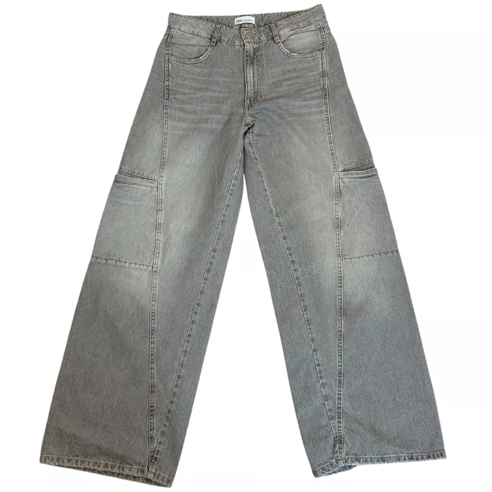 Zara barrel wide leg cargo jeans grey